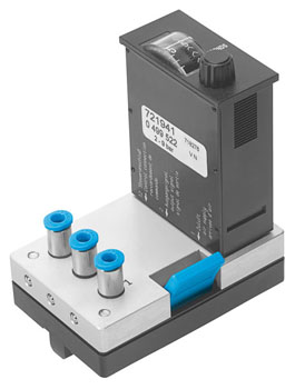 Das Verzögerungsventil besteht aus einem pneumatisch betätigten 3/2-Wegeventil, einem Drosselrückschlagventil und einem kleinen Luftspeicher. Hat sich der notwendige Druck über den Steueranschluss 10 im Speicher aufgebaut, schaltet das 3/2-Wegeventil um und sperrt den Durchfluss von 1 nach 2.