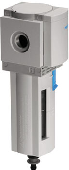 The compressed air filter removes contamination from the compressed air. The size of the filterable particles is dependent upon the filter class. Condensation, which can occur through sinking temperatures or the expansion of the compressed air, can be manually drained off.