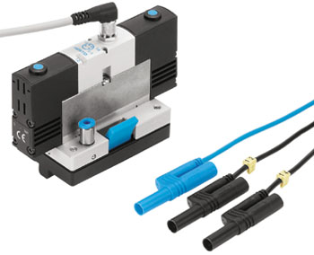 The solenoid valve is controlled by applying a voltage signal at the solenoid coil. Connection 1 is shut. By stopping the signal the valve is set back to its starting position through the use of a return spring. The flow passes freely from 1 to 2. If no signal is applied to the valve, it can be manually operated.