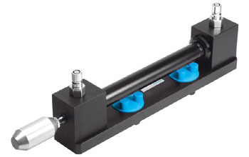 Double acting cylinder with piston rod on one side. The piston of the cylinder contains a permanent solenoid which can be used to operate a proximity switch.