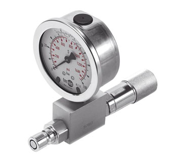 The differential pressure gauge displays the pressure difference between the adjacent pressures at the left and the right connection.