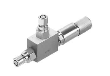 A T-junction joins up to four hydraulic lines, thus having a single pressure potential. Note that T-junctions are introduced automatically by FluidSIM when dropping the line drawing cursor onto another line in Edit Mode.