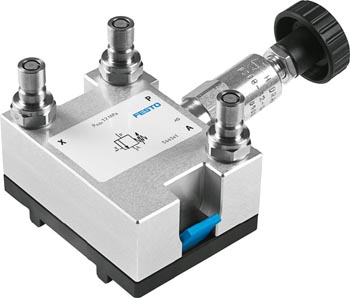 The valve connects port P and port T if the pressure at port X is greater than the total of the spring force and pressure in port T.