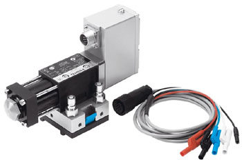 By the use of an integrated electronic position controller for the slide distance, beneficial static and dynamic characteristics are achieved that are manifested in a minimal hysteresis (less than 0,2 %) and a response time of less than 12 ms at a signal change of 0 - 100.