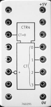 The counter counts the number of falling edges from 1 to 0 at input I. The number is saved as a 4-bit number x and output bit-by-bit via the outputs Q0, Q1, Q2 and Q3. The counter is reset to x=0 after the value x=15 is reached. The counter can also be set to 0 with the value 1 at the input CT=0. The counter x is output to the outputs as follows: