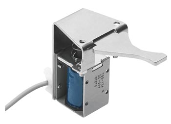 The solenoid converts electrical energy into mechanical energy. An iron core is pulled when a current flows through a coil. The iron core is returned to its neutral position by a spring after electrical current to the coil has been switched off. The solenoid can be used as a gate or a stopper.